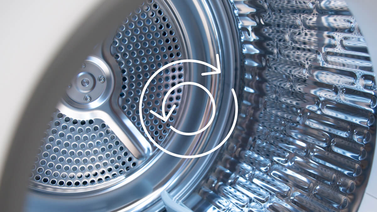 A unique air circulation system and advanced reverse tumbling significantly reduces tangling of clothes and sheets on all dry cycles except Rack Dry. Meanwhile, a pillow drum cushions laundry and helps care for clothes better.